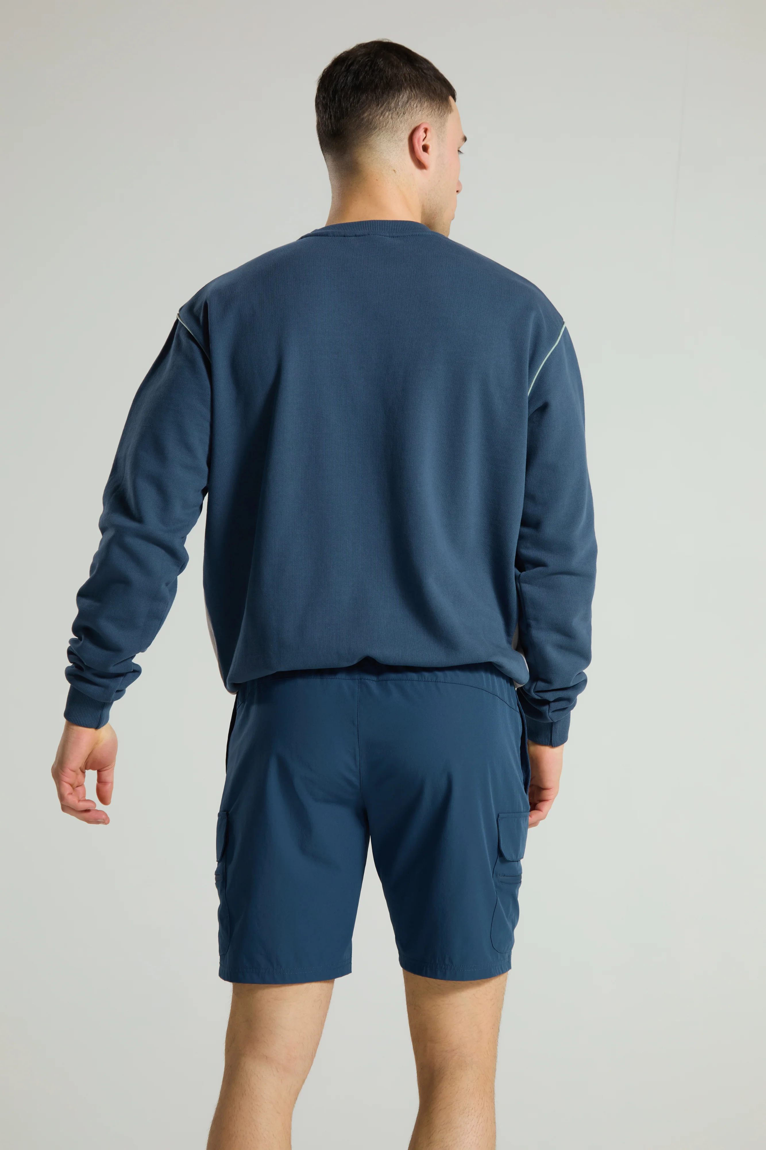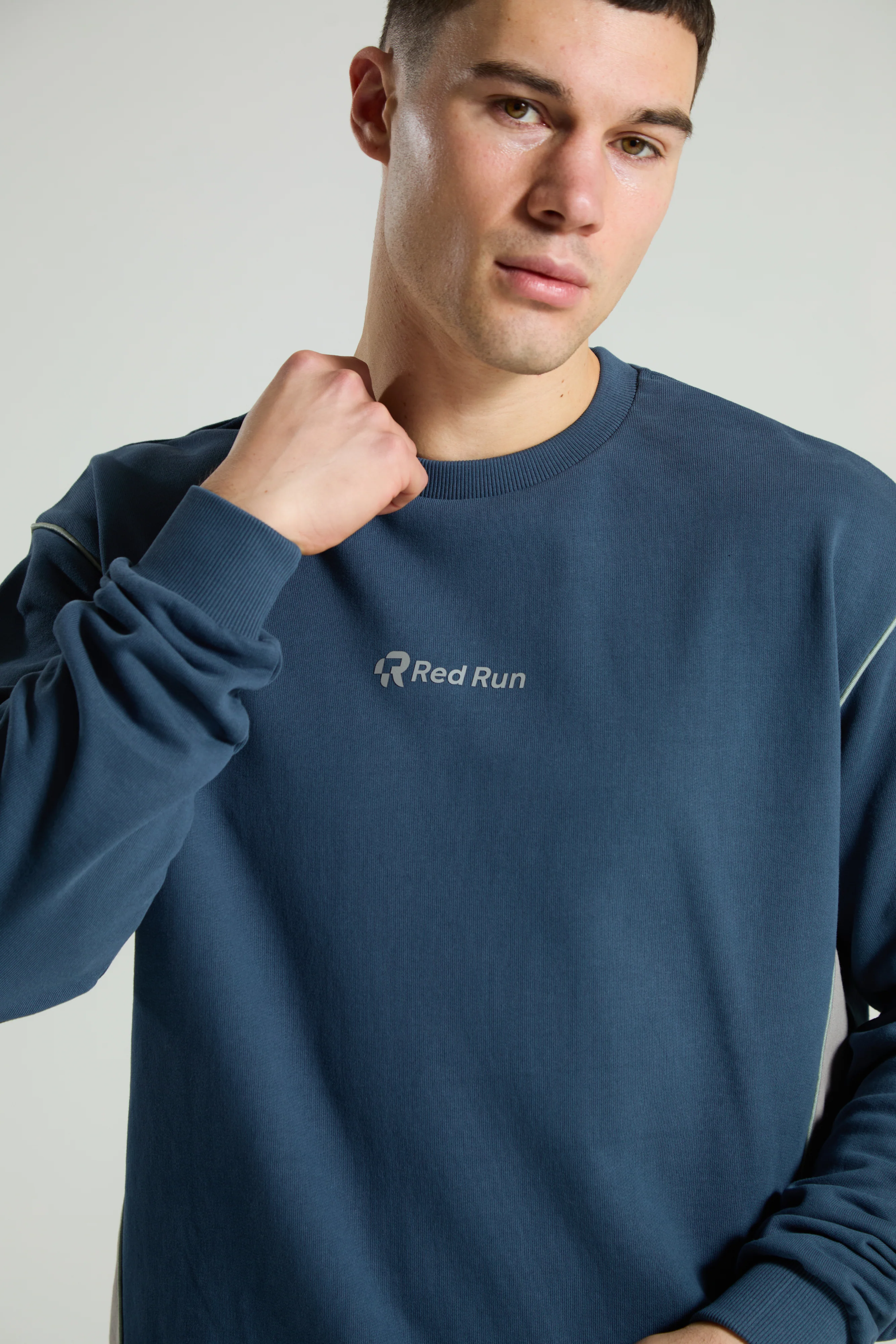 Introducing our men's crew neck sweater in blue and grey. This sweater is designed to ensure comfort, while the breathable and durable cotton keeps you cool in your everyday look.